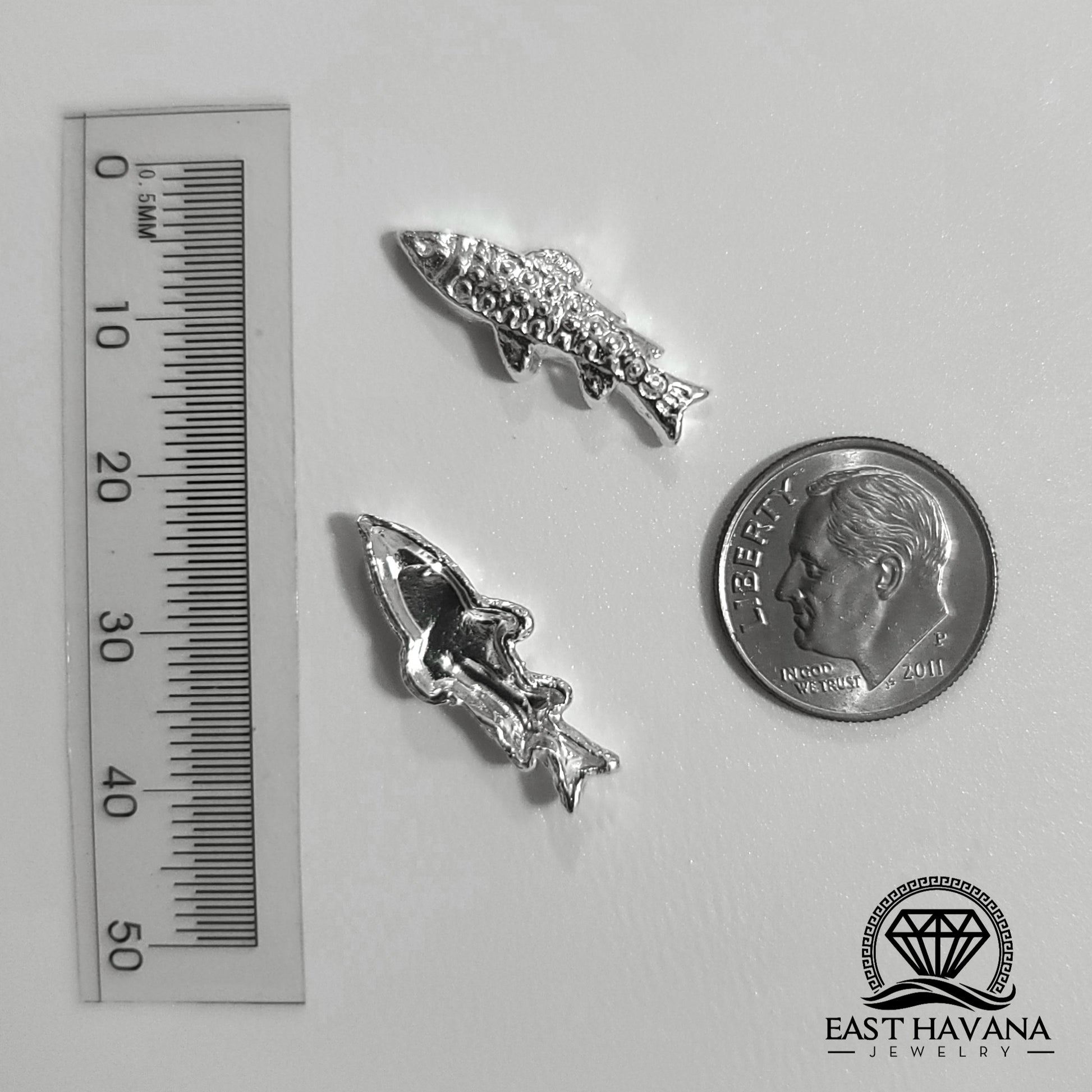 Salmon Fish .950 Silver Casting (more pure than most sterling silver). Hand casted, pickled and tumbled by us. Some will require additional filing and cleanup.